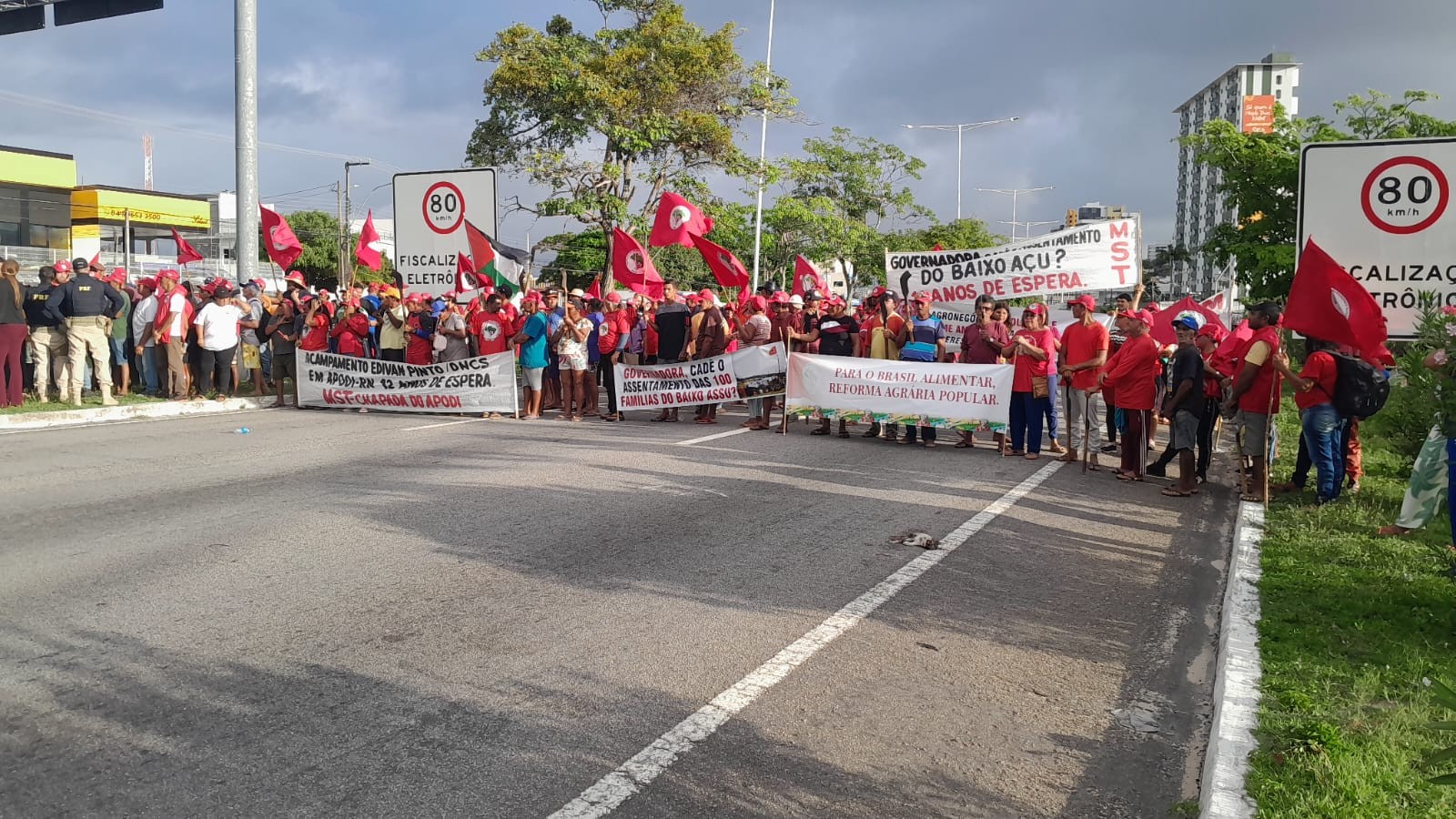 Manifestantes ligados ao Movimento dos Trabalhadores Rurais Sem Terra (MST) fecharam totalmente um trecho da BR-101 no bairro Lagoa Nova, em Natal, na tarde desta quarta-feira (23). O movimento ocorreu na altura da passarela de Potilândia.