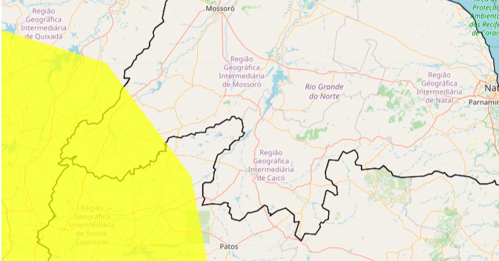 O aviso é da cor amarela, o que representa perigo potencial, o nível mais baixo na escala de severidade do órgão. Os níveis acima são laranja (perigo) e vermelho (grande perigo).