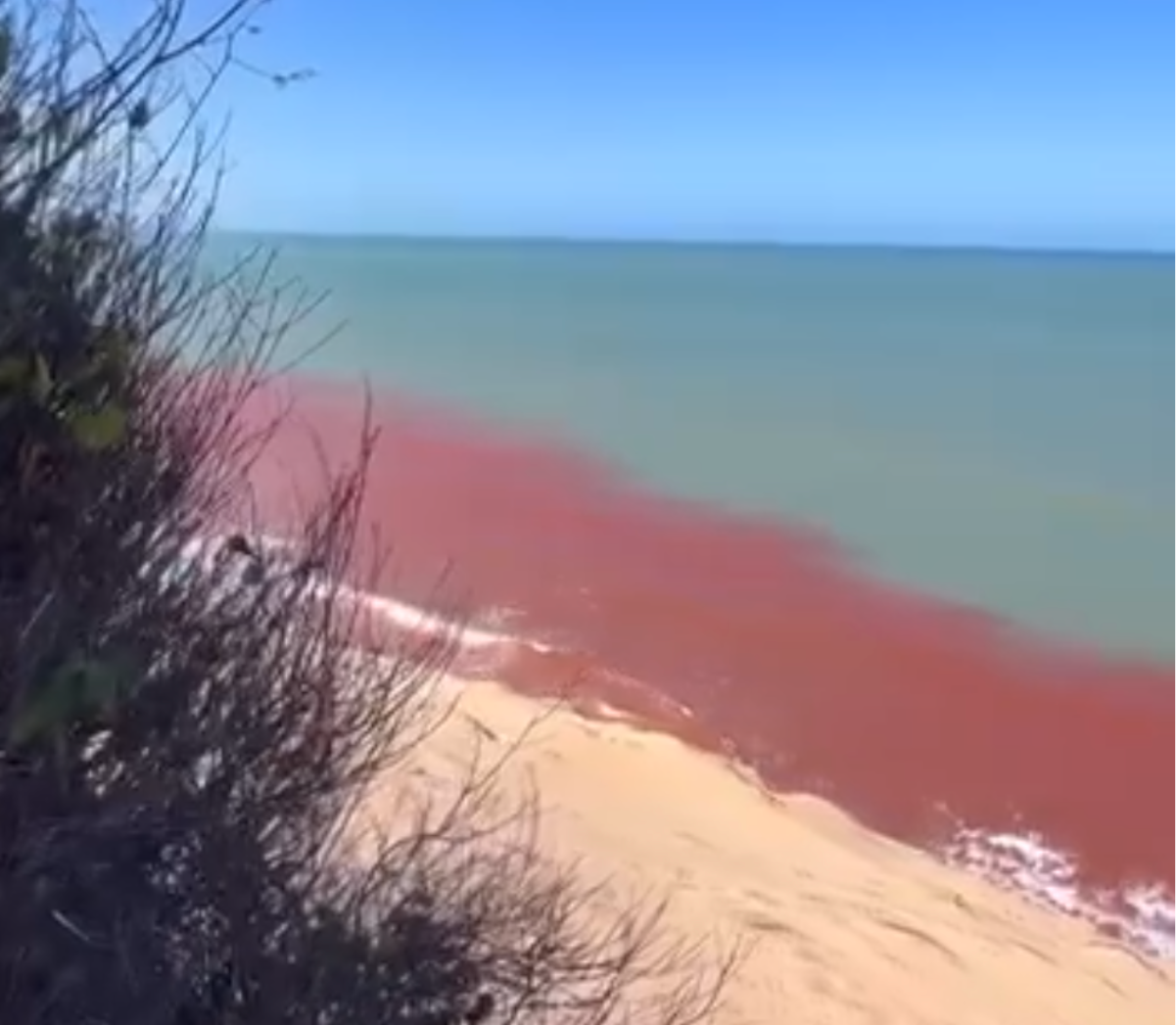 ‘Maré vermelha’ chama atenção na Praia de Pipa (Vídeo: Tibau Notícias/@tibau_noticias_pipa)