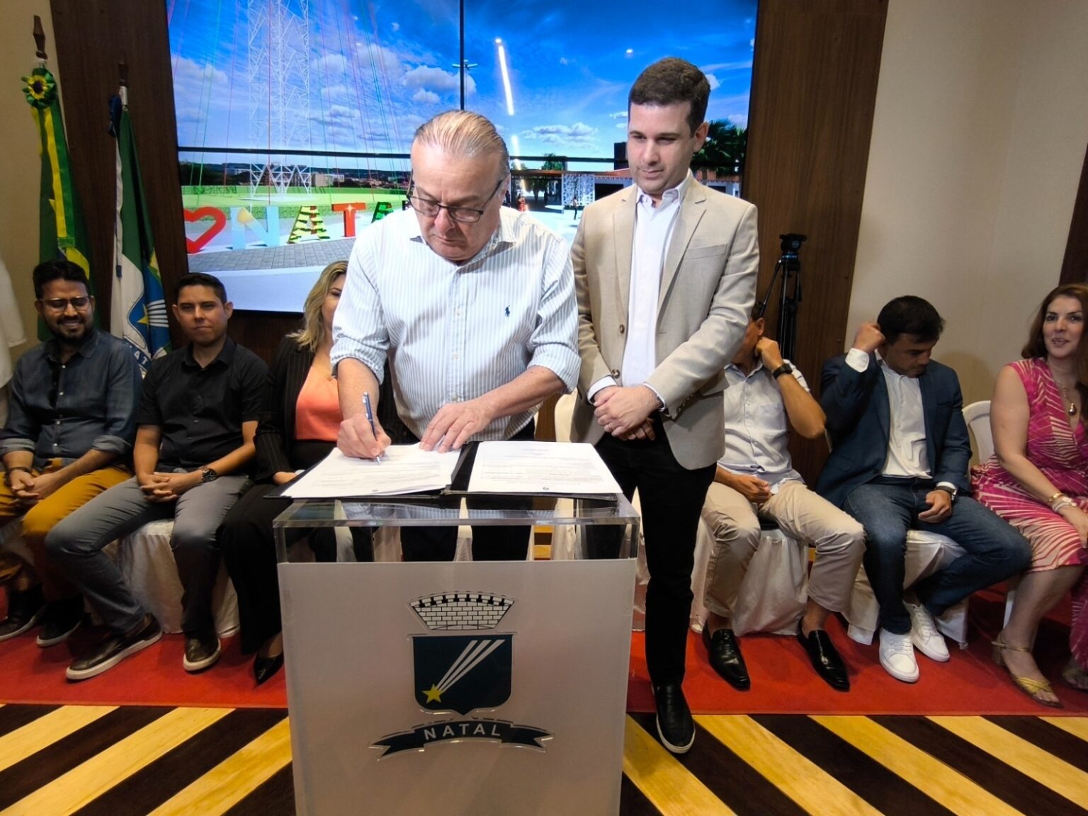 A Prefeitura do Natal deu início, nesta terça-feira (22), a três importantes obras estruturantes voltadas à valorização urbana e turística da cidade. O prefeito Paulinho Freire assinou a ordem de serviço que autoriza a construção de um novo pavilhão na Praça da Árvore de Mirassol, a reestruturação da tradicional árvore natalina e a revitalização do Mercado Público das Quintas, somando um investimento total de R$ 2.162.758,75. “É uma alegria assinar hoje a ordem de serviço para essas três importantes obras, que começam imediatamente, com um investimento de quase R$ 2,2 milhões. A intervenção em Mirassol, em especial, tem um peso significativo para Natal, que é uma cidade essencialmente turística. Precisamos oferecer mais espaços de entretenimento e visitação, não apenas para atrair visitantes, mas também para proporcionar mais qualidade de vida à nossa população”, destacou o prefeito Paulinho Freire. Na zona Sul da capital, a Praça da Árvore de Mirassol, em Capim Macio, receberá um novo pavilhão com cobertura fixa, paisagismo e novo mobiliário urbano. A icônica Árvore de Mirassol — considerada uma das maiores do país — também será submetida a reforço estrutural e manutenção completa. As melhorias visam oferecer uma estrutura permanente, sobretudo para o “Natal em Natal”, substituindo as instalações temporárias usadas em eventos anteriores. Freire destacou que o investimento permanente representa economia aos cofres públicos. “Os custos com locação no período do Natal eram superiores ao valor que está sendo aplicado na obra. Além disso, a estrutura antiga apresentava riscos, com partes enferrujadas”, explicou. O secretário da Semsur, Felipe Alves, também ressaltou os ganhos da intervenção. “Essas obras foram cuidadosamente planejadas e fazem parte de um compromisso da gestão com a requalificação dos espaços públicos. A nova estrutura da Praça da Árvore vai permitir uma programação cultural permanente, além de se tratar de um projeto moderno, que usa madeira, concreto e que terá bancos com tecnologia que reduz a absorção do calor”, afirmou. Alves fez questão de mencionar o papel da secretária do Trabalho e Assistência Social, Nina Souza, na idealização do novo espaço. “Foi uma ideia que tivemos a partir da provocação da secretária Nina. Um espaço propício para exposição, artesanato e outros atrativos que com certeza vai chamar a atenção da população”, acrescentou. Na zona Oeste, a reforma do Mercado das Quintas contemplará melhorias na cobertura, acessibilidade, sistema elétrico, pintura e paisagismo. Com investimento de R$ 98 mil, a requalificação atende a uma antiga demanda dos moradores da região. “Esse era um pedido da população. Existem pessoas das Quintas que têm muito orgulho daquele mercado. Vai ficar um mercado muito bacana”, afirmou Paulinho Freire. Além do prefeito e do secretário Felipe Alves, participaram da solenidade a vice-prefeita Joanna Guerra; a secretária Nina Souza; o vereador Aldo Clemente; e representantes das empresas Plena Arquitetura e Engenharia, MVP Engenharia e Construção, e Engecon Engenharia.