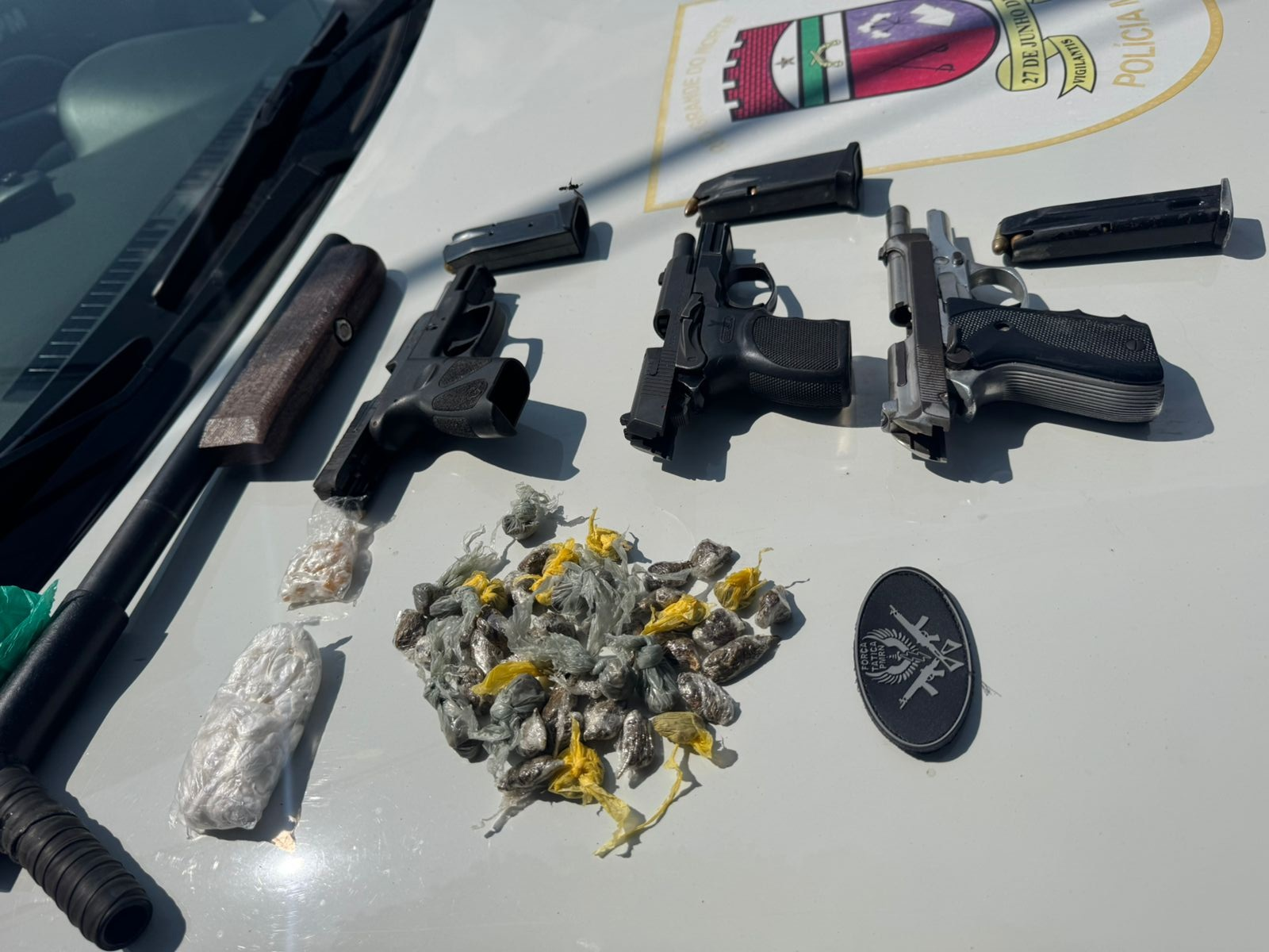 Com eles, a polícia apreendeu quatro armas, sendo três pistolas e uma espingarda calibre 12, além de carregadores e porções de maconha, crack e cocaína. Dos quatro mortos, apenas um foi identificado. O homem já tinha passagem pela polícia por porte ilegal de arma de fogo e era considerado um dos líderes da facção local que agia em Maracajaú.