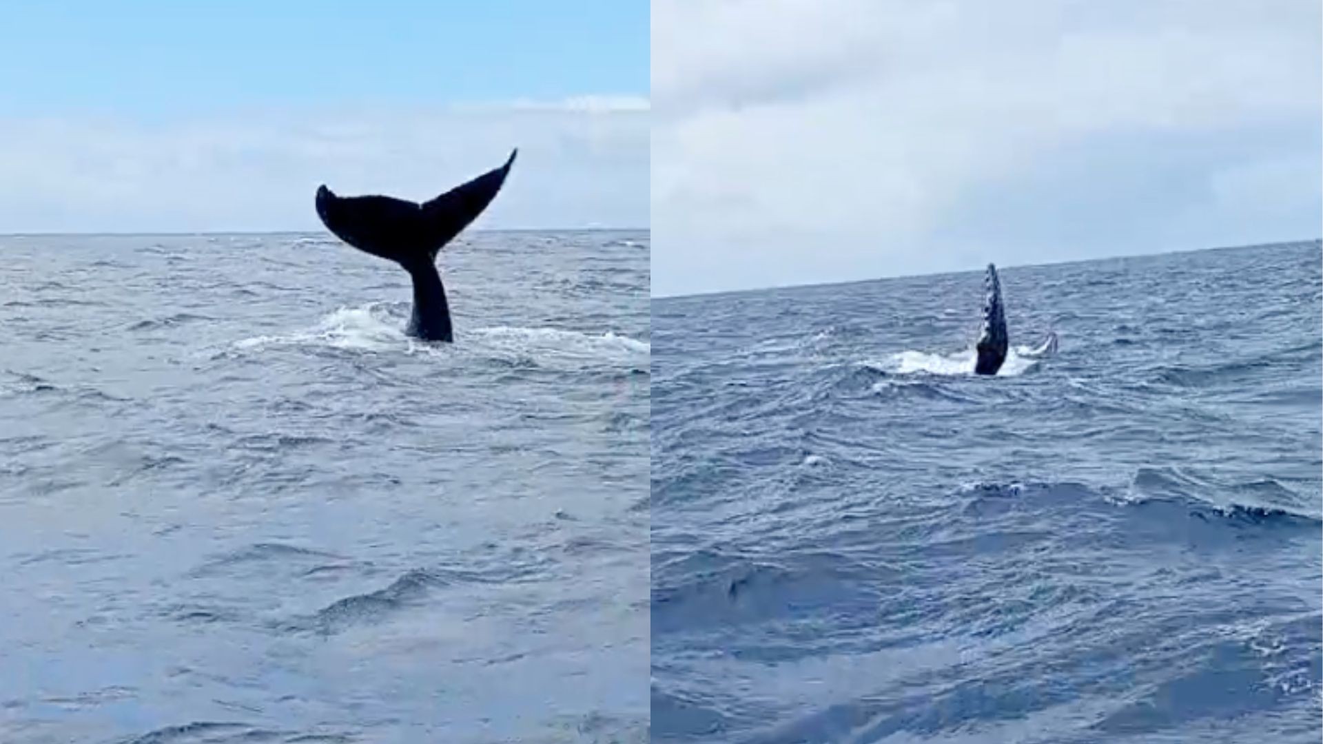 “Era um grupo de oito animais, geralmente a gente chama isso de grupo competitivo, animais engajados em atividade sexual, uma fêmea para vários machos, a gente não visualiza filhotes. Eles estavam saltando, batendo as caldas, movimentando as nadadeiras, isso caracteriza os machos disputando entre eles, para ter acesso a fêmea”, explicou.
